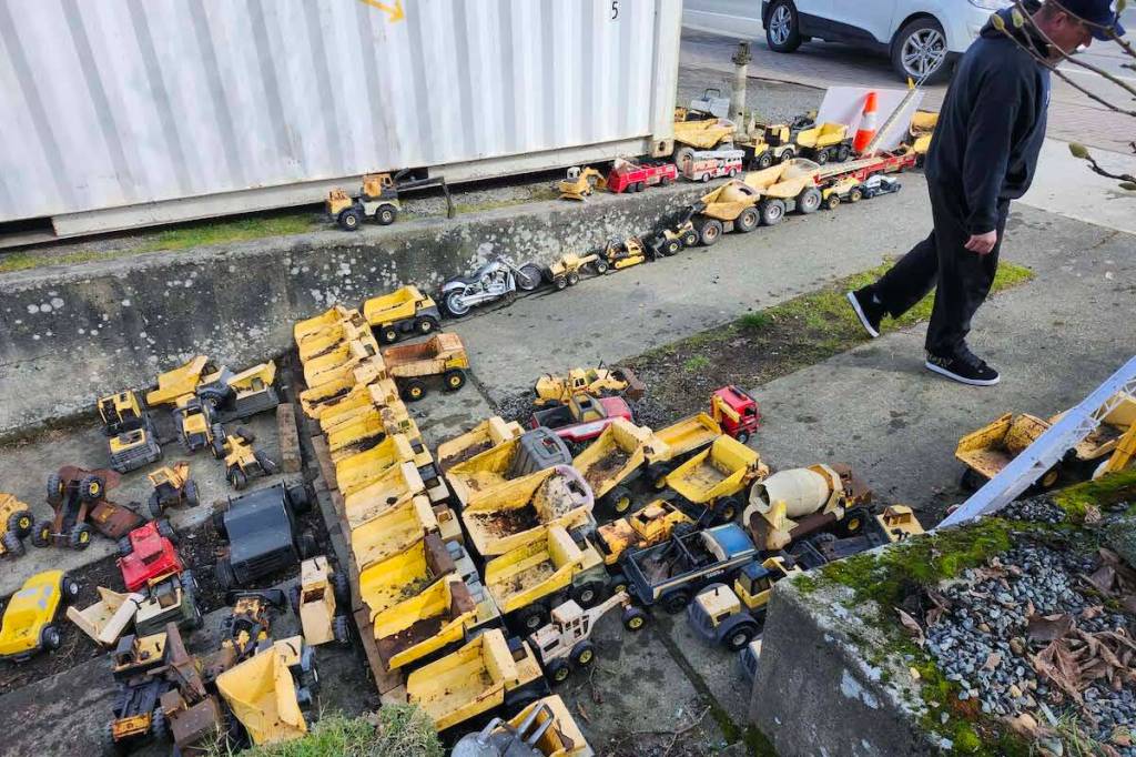 Over 100 people stopped by Erik Berbenuik’s Langford home to pick up and take home one of nearly 150 Tonka trucks from his yard. (Courtesy of Erik Berbenuik)